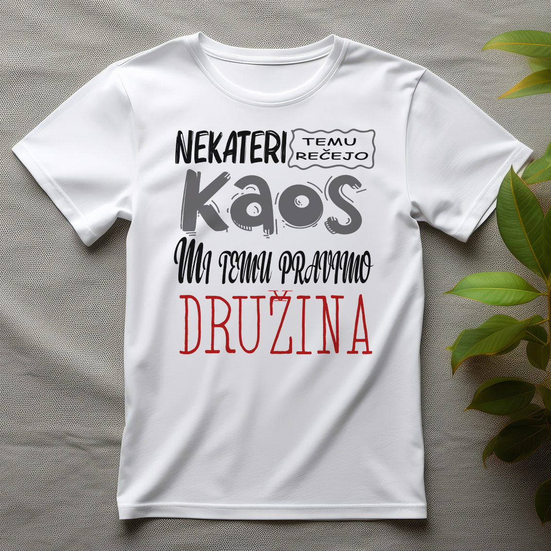 Majica z lepim barvnim napisom "Nekateri temu rečejo kaos, mi temu pravimo družina.". S tem duhovitim in popolnoma relatable napisom pokažite svoj smisel za humor in iskreno ljubezen do družinskega vrveža – tistega čudovitega "kaosa", kjer se vsi derejo, smejijo in imajo radi hkrati. Mehka, zračna majica iz kakovostnega bombaža je udobna za vsak dan – za družinska kosila, vikend norije, srečanja s prijatelji ali trenutke, ko želite nasmejati vse okoli sebe.