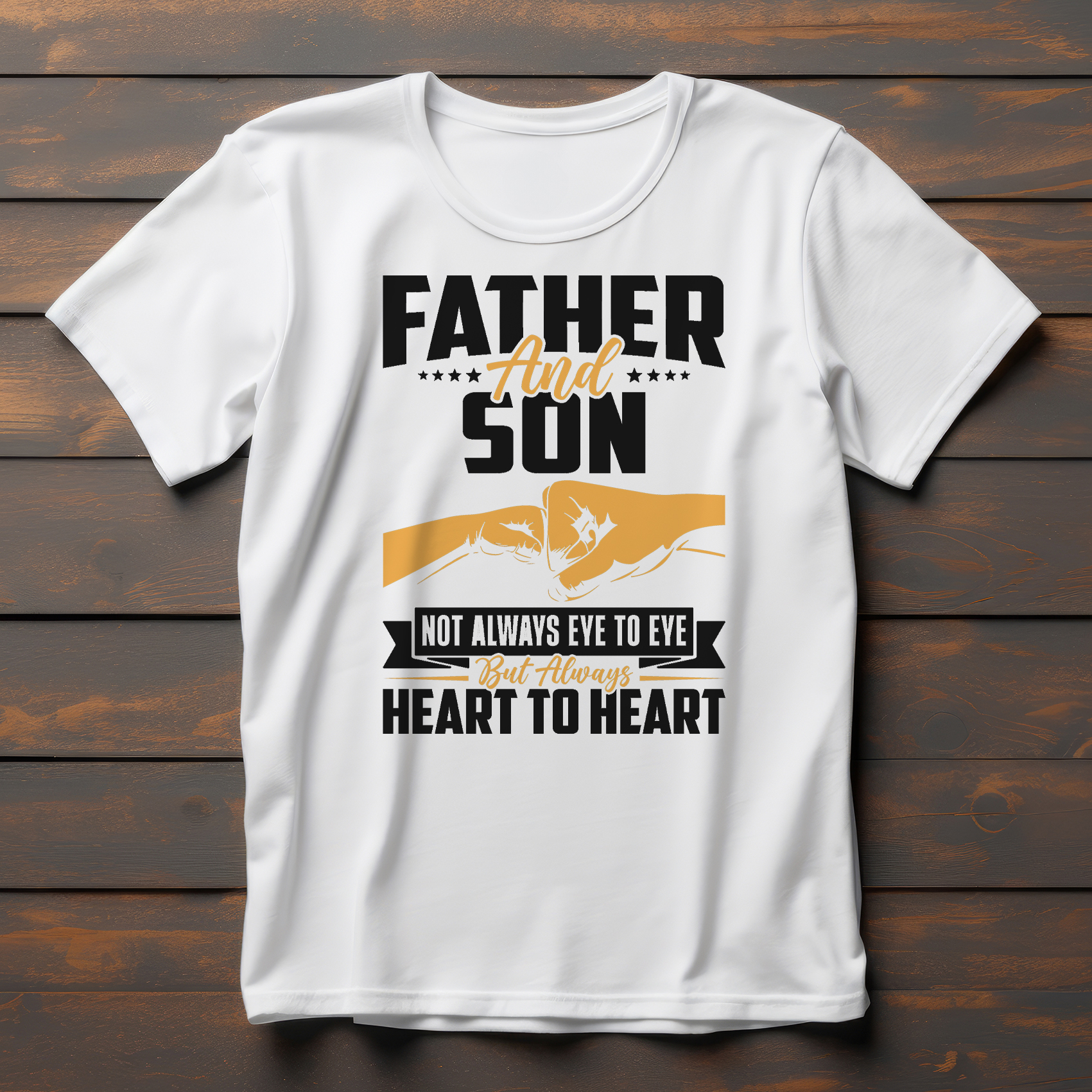 Majica "OČE IN SIN" z ganljivo grafiko dveh pestmi, obrnjenih ena proti drugi, in napisom "FATHER AND SON, NOT ALWAYS EYE TO EYE BUT ALWAYS HEART TO HEART". Pokažite svojo močno in ljubečo očetovsko vez z našo edinstveno majico! Ta udobna in stilska majica je kot nalašč za očete, ki cenijo globoko povezanost s sinom in radi izražajo svojo ljubezen z pomenljivim dizajnom. Izdelana je iz mehkega, zračnega materiala, idealnega za vsakodnevne trenutke ali posebne družinske priložnosti.