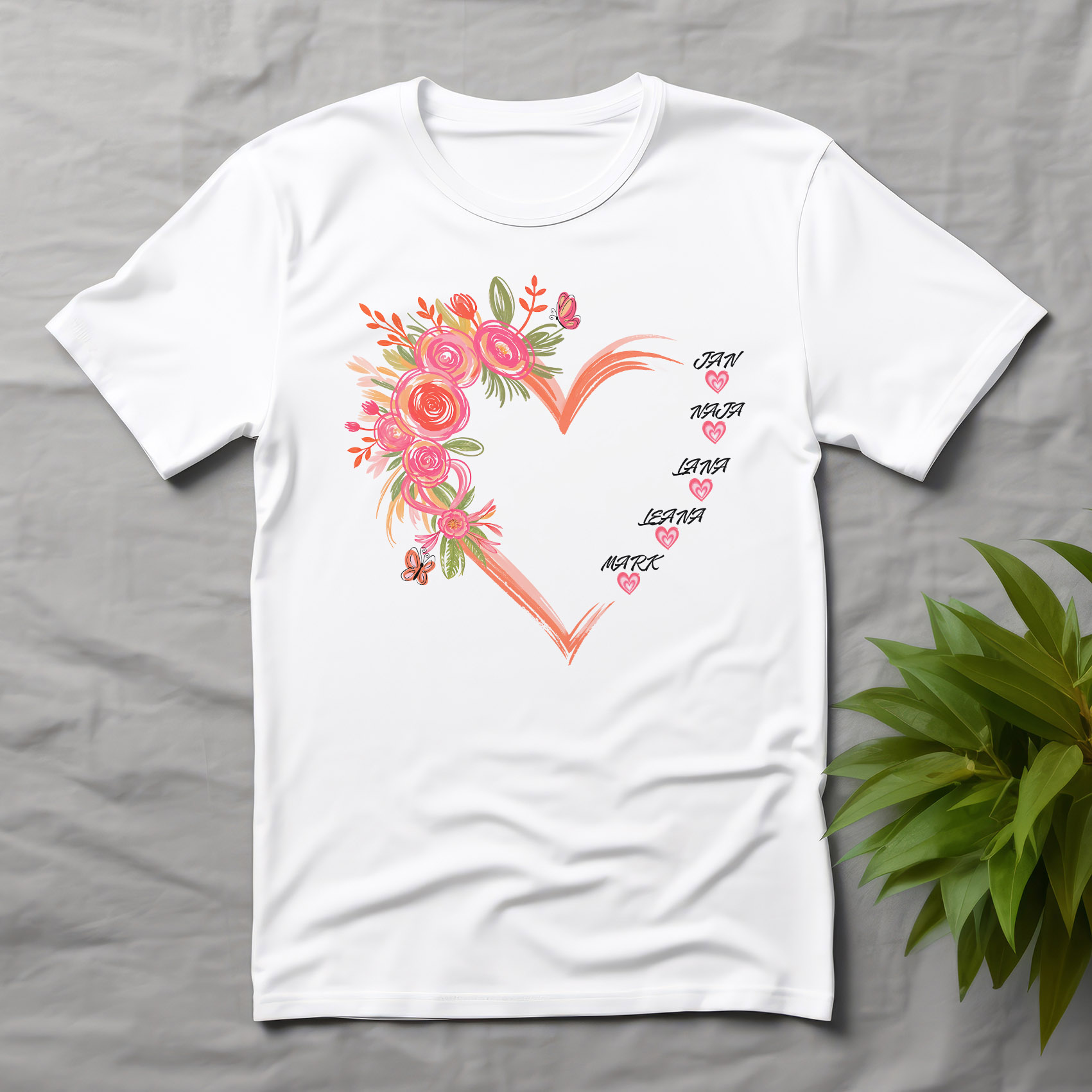 Majica "MAMA OTROCI" z natisom velikega srca in majhnimi srčki, personaliziranimi z imeni vaših otrok. Pokažite svojo ljubezen do družine z našo čudovito majico! Ta udobna in stilska majica je popolna za mame, ki želijo s ponosom nositi imena svojih malčkov. Izdelana je iz mehkega, zračnega materiala, idealnega za vsakodnevno nošenje ali posebne družinske trenutke.