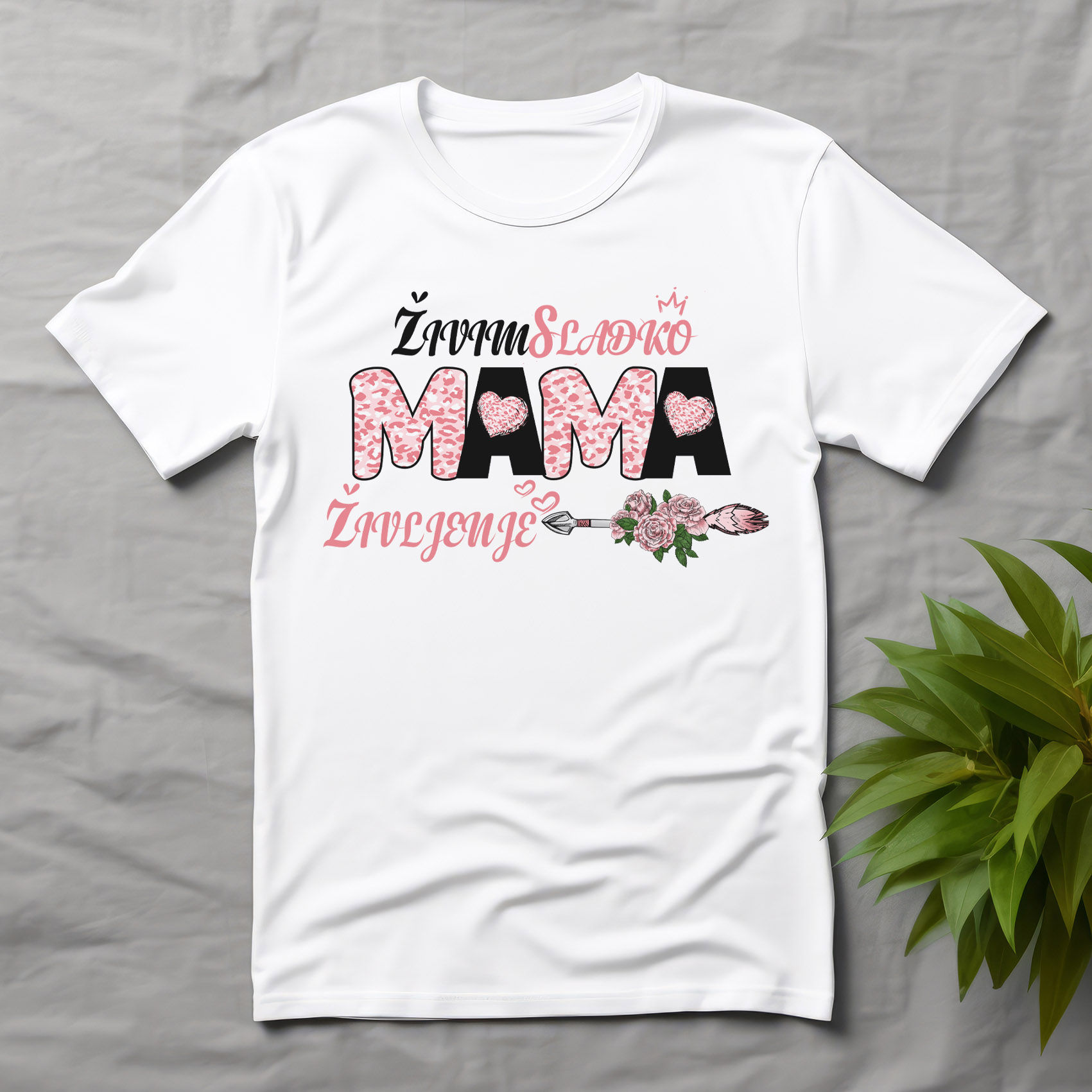 Majica "SLADKA MAMA" z grafiko na sredini, ki prinaša razigran napis "ŽIVIM SLADKO MAMA ŽIVLJENJE". Pokažite svojo radostno in brezskrbno mamin duh z našo edinstveno majico! Ta udobna in trendovska majica je idealna za mame, ki uživajo v sladkih trenutkih življenja in radi izražajo svojo igrivost. Izdelana je iz mehkega, zračnega materiala, popolnega za vsakodnevne avanture ali sproščena druženja.