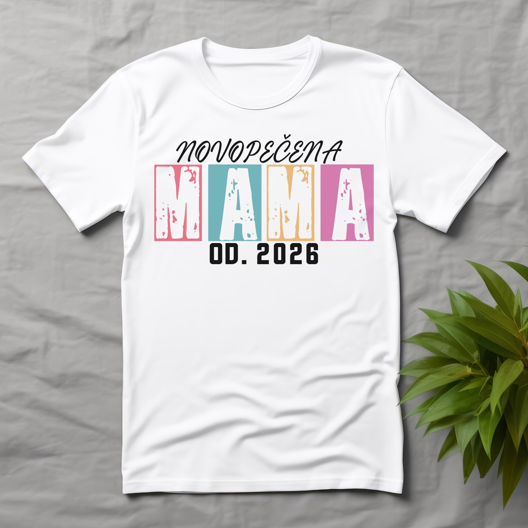 Majica "NOVOPEČENA MAMA 2026" z živahno barvno grafiko na sredini, ki poudari napis "NOVOPEČENA MAMA" skupaj z letnico 2026. Proslavite svoj vznemirljiv nov začetek kot mama z našo edinstveno majico! Ta udobna in trendovska majica je kot nalašč za novopečene mamice, ki z veseljem objemajo materinstvo z barvitim stilom. Izdelana je iz mehkega, zračnega materiala, idealnega za vsakodnevne trenutke ali posebne priložnosti z dojenčkom.