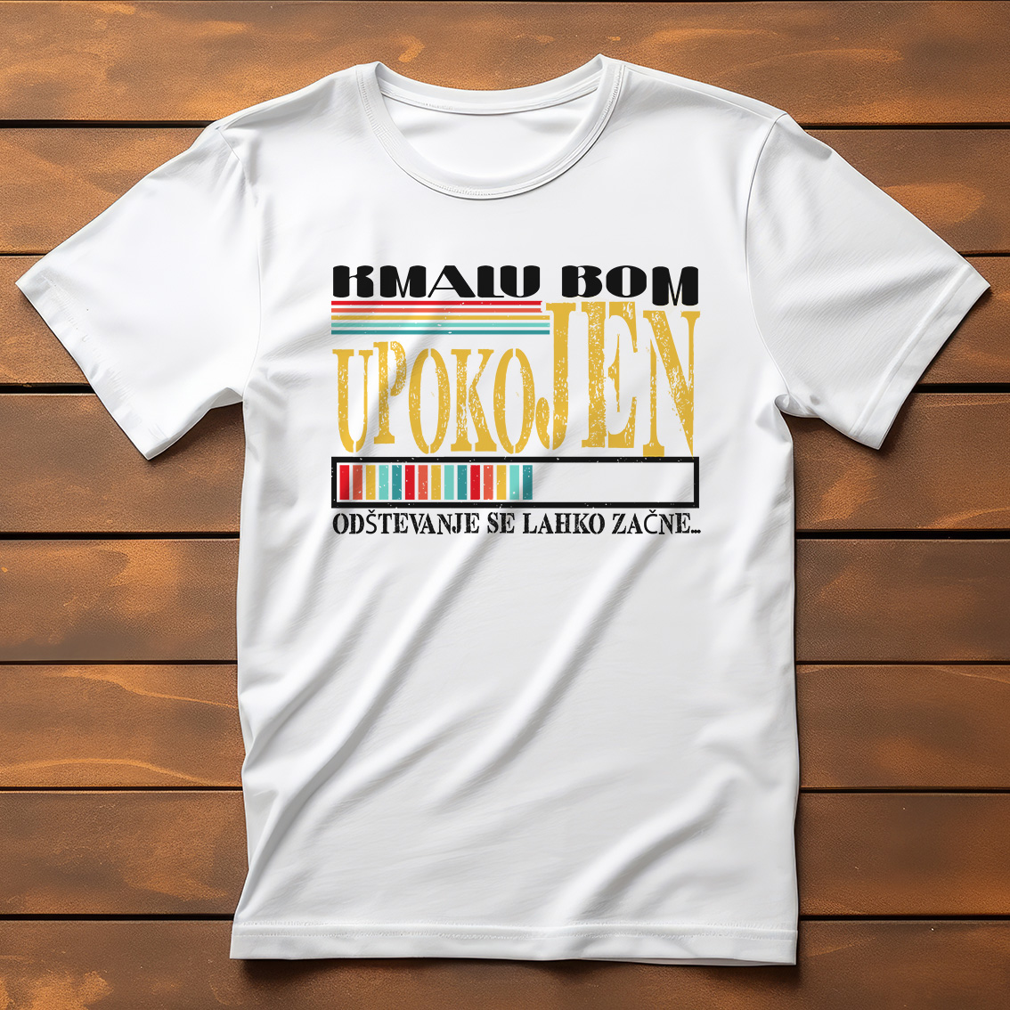 Majica s prelepo grafiko iz več barv – velikim napisom »Kmalu bom upokojen, odštevanje se lahko začne«.