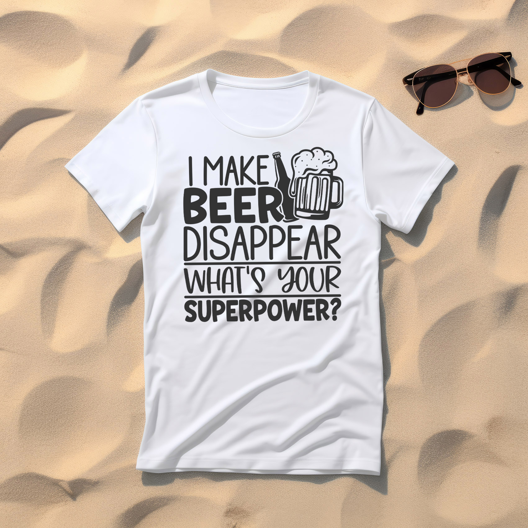 Majica "I Make Beer Disappear, What's Your Superpower?". Pokažite svojo edinstveno "supermoč" z našo duhovito majico! Ta udobna in stilska majica je kot nalašč za ljubitelje piva, ki radi nasmejijo okolico. Izdelana iz mehkega, zračnega materiala, je idealna za sproščene večere, zabave ali vsakodnevno nošenje.
