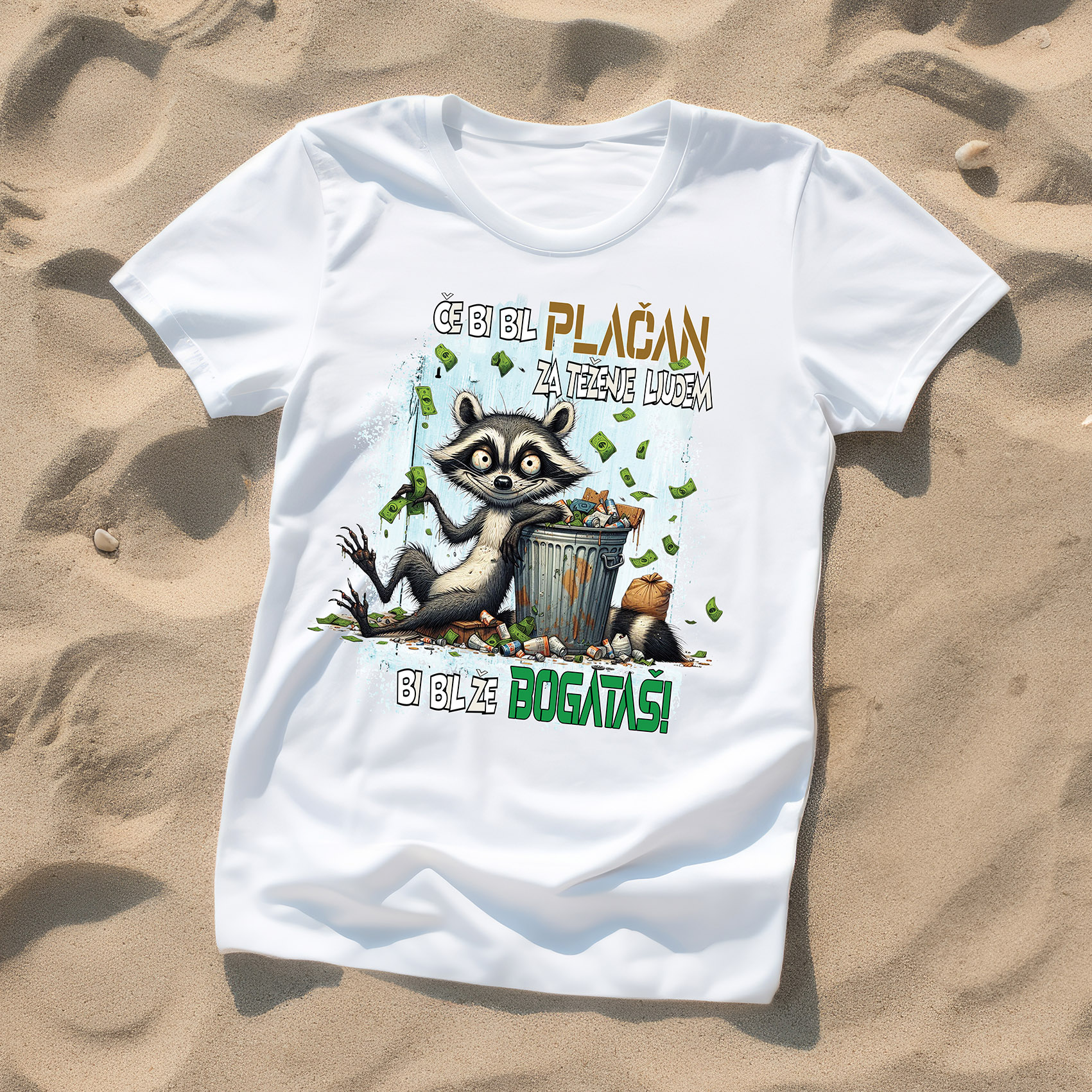 Majica s srčkano živalico, okoli katere letijo bankovci in kovanci, ter duhovitim napisom "ČE BI BIL PLAČAN ZA TEŽENJE LJUDEM BI BIL ŽE BOGATAŠ". Izrazite svoj sarkastični smisel za humor in ljubezen do pritoževanja na zabaven način! Udobna majica iz mehkega, zračnega materiala je idealna za vse, ki radi "težijo" prijateljem, za casual dneve ali trenutke, ko potrebujete nasmeh ob lastnih muhah.