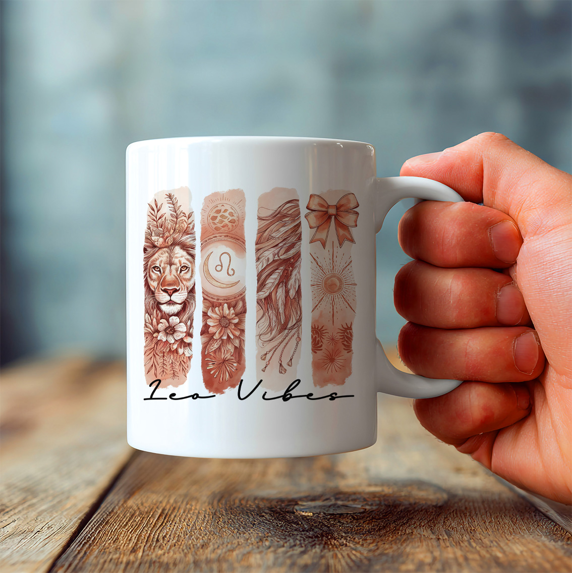 Šalica z enakim motivom "Lev". Začnite dan kot pravi Lev: z skodelico kave ali čaja, ki vas spomni na vašo največjo moč – ponos, organiziranost in iskrenost. Kakovostna keramična šalica prostornine 330 ml odlično ohranja toploto, motiv pa je natisnjen trpežno, da prenese številna pranja v pomivalnem stroju.
