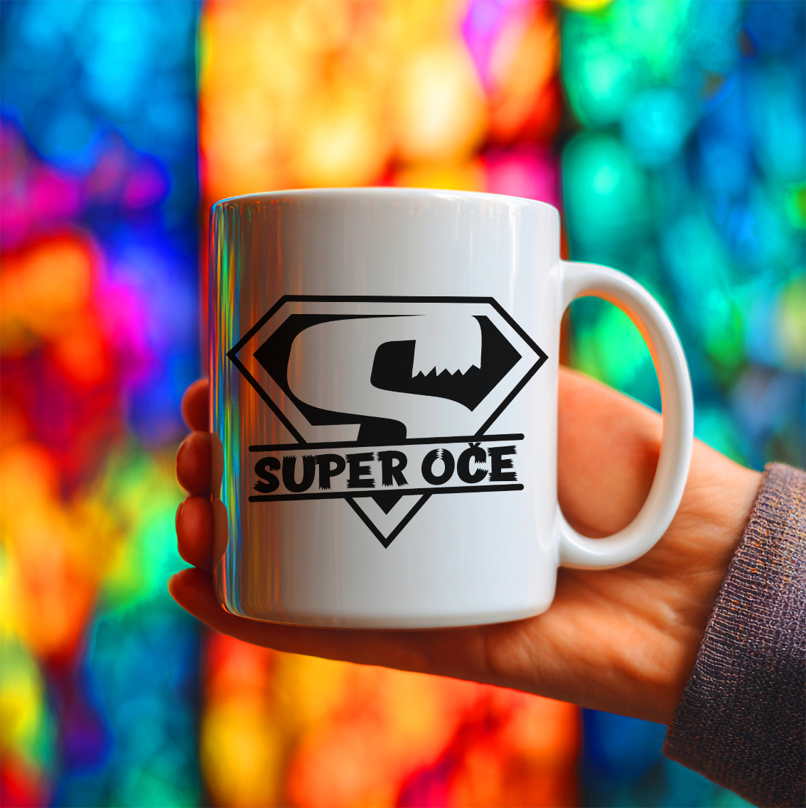 Z enobarvno grafiko na sredini, ki združuje drzen napis "SUPER OČE" in ikoničen znak Supermana. Pokažite svojo očetovsko super moč z našo edinstveno šalico! Ta kakovostna keramična šalica prostornine 330 ml je kot nalašč za očete, ki s ponosom nosijo svojo vlogo junaka v očeh svojih otrok. Motiv je natisnjen trpežno, da ostane lep tudi po mnogih pranjih v pomivalnem stroju, idealna pa je za jutranjo kavo, popoldanski čaj ali sproščena družinska srečanja.