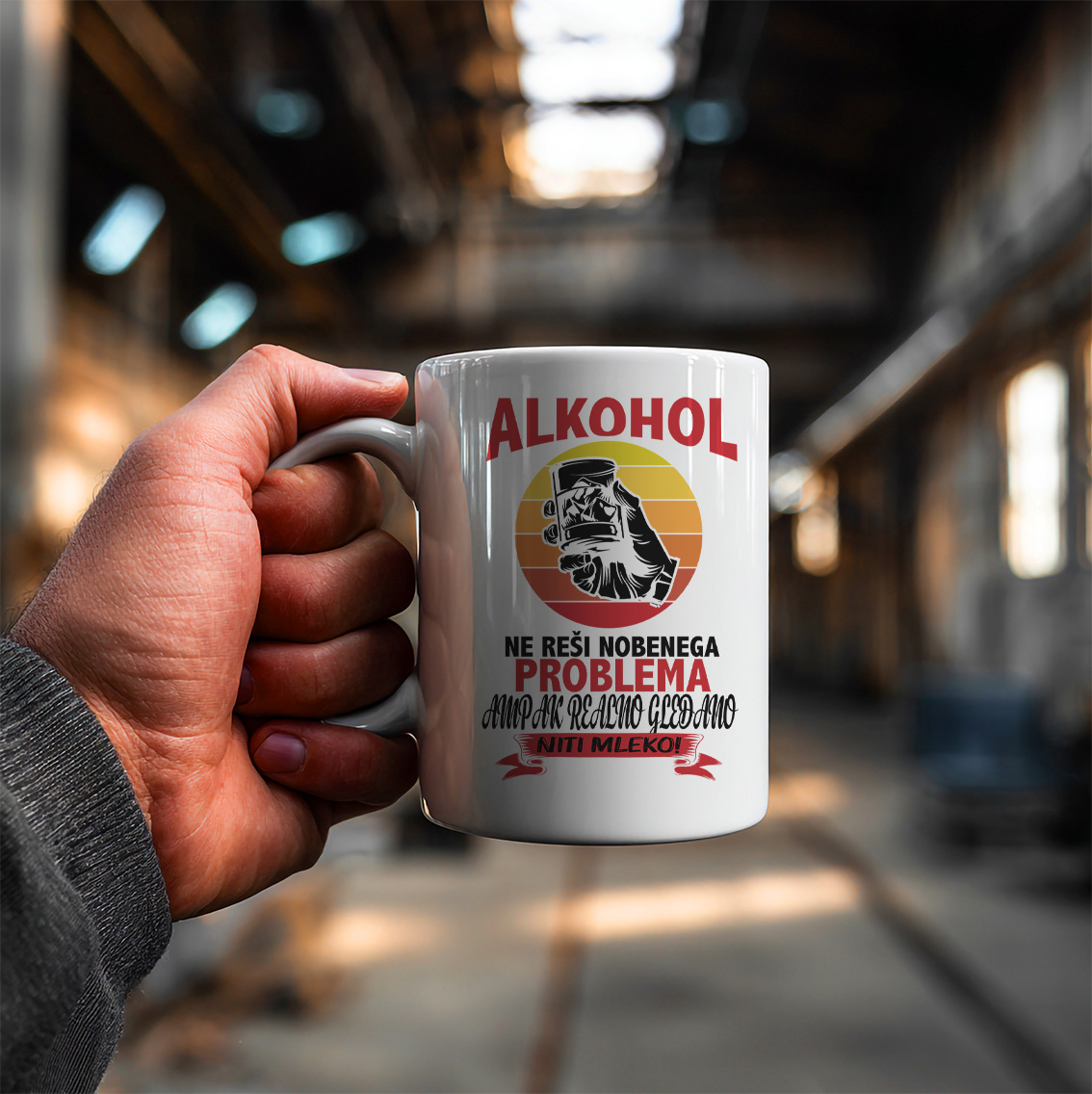 Keramična šalica z duhovitim in sarkastičnim napisom "Alkohol ne reši nobenega problema, ampak če realno gledamo, tudi mleko ne". Vsak požirek iz te šalice vam bo izvabil nasmeh in takoj dvignil razpoloženje – popolna za vse, ki radi z ironijo pogledate na življenje. Ta kakovostna šalica je idealna za jutranjo kavo (ki jo lahko v mislih zamenjate za kaj močnejšega), pisarniški odmor ali sproščene večere s prijatelji.