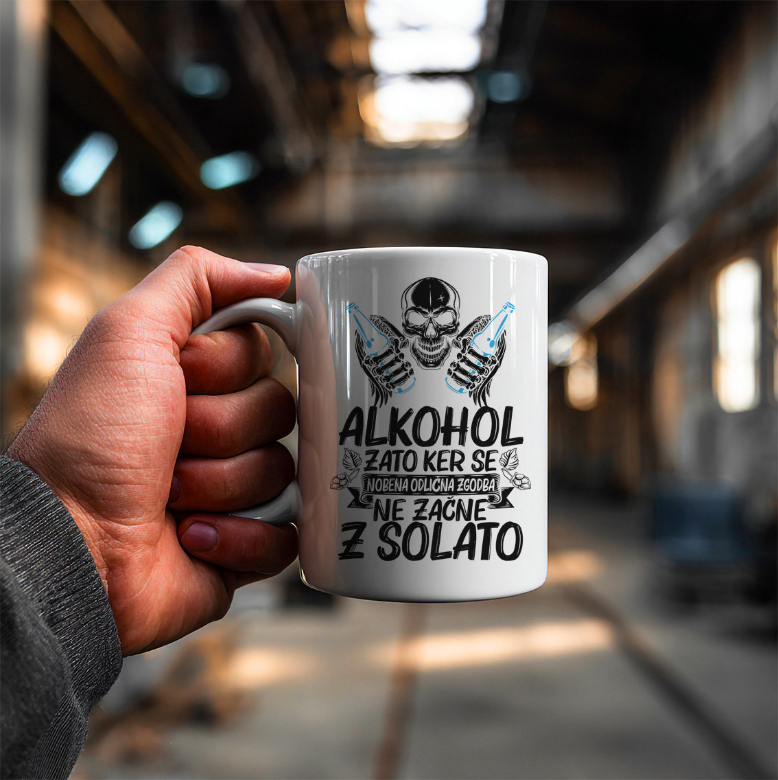 Keramična šalica z duhovitim in nepozabnim napisom "Alkohol, ker se nobena odlična zgodba ne začne z solato". Vsak požirek iz te šalice vas bo nasmejal in takoj postavil v pravo razpoloženje za dobre zgodbe. Popolna za vse, ki vedo, da se najboljše stvari v жизни začnejo ob kozarcu ali dveh – idealna za jutranjo kavo (ki jo lahko v mislih zamenjate za kaj bolj zabavnega), pisarniški odmor ali sproščene večere s prijatelji.