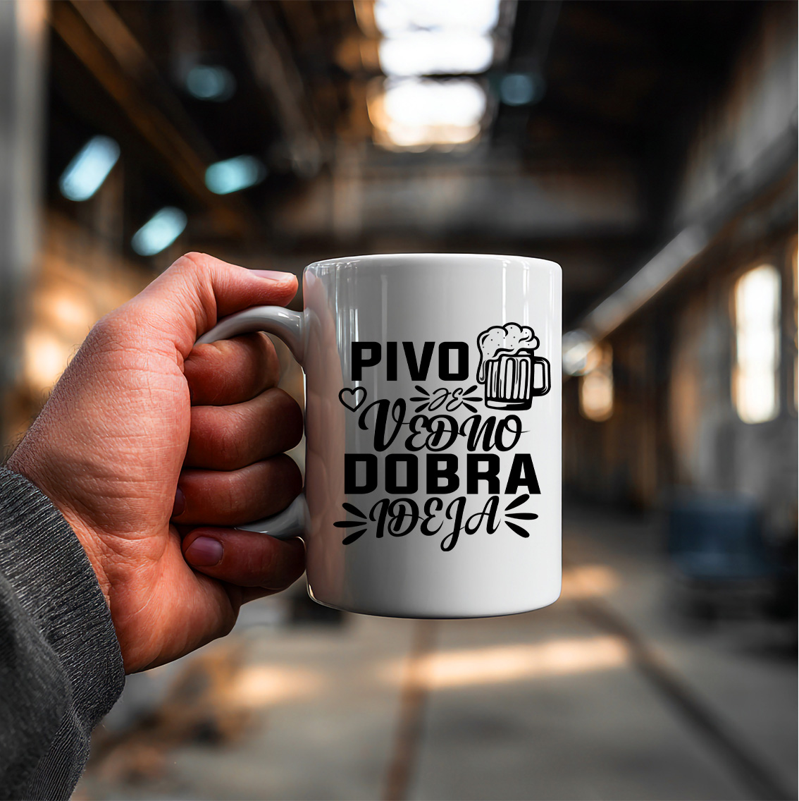 Keramična šalica z zabavnim in nepremagljivim napisom "Pivo je vedno dobra ideja". Vsak požirek iz te šalice vas bo nasmejal in takoj dvignil razpoloženje – popolna za vse, ki verjamejo, da je pivo prava rešitev za vsako priložnost. Ta kakovostna šalica je idealna za jutranjo kavo (ki jo lahko v mislih zamenjate za pivo), pisarniški odmor, sproščene večere ali pivske zabave s prijatelji.