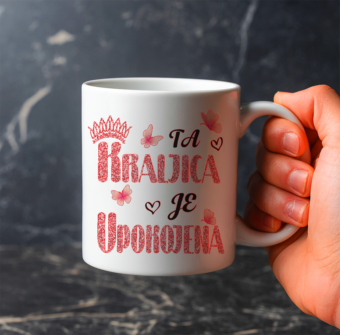 Zakaj izbrati to šalico? Ker je vsakodnevni opomnik na zasluženo kraljevsko svobodo. Popolno darilo za upokojenko – krona dodaja eleganco, napis pa nasmeh ob vsakem srkanju.