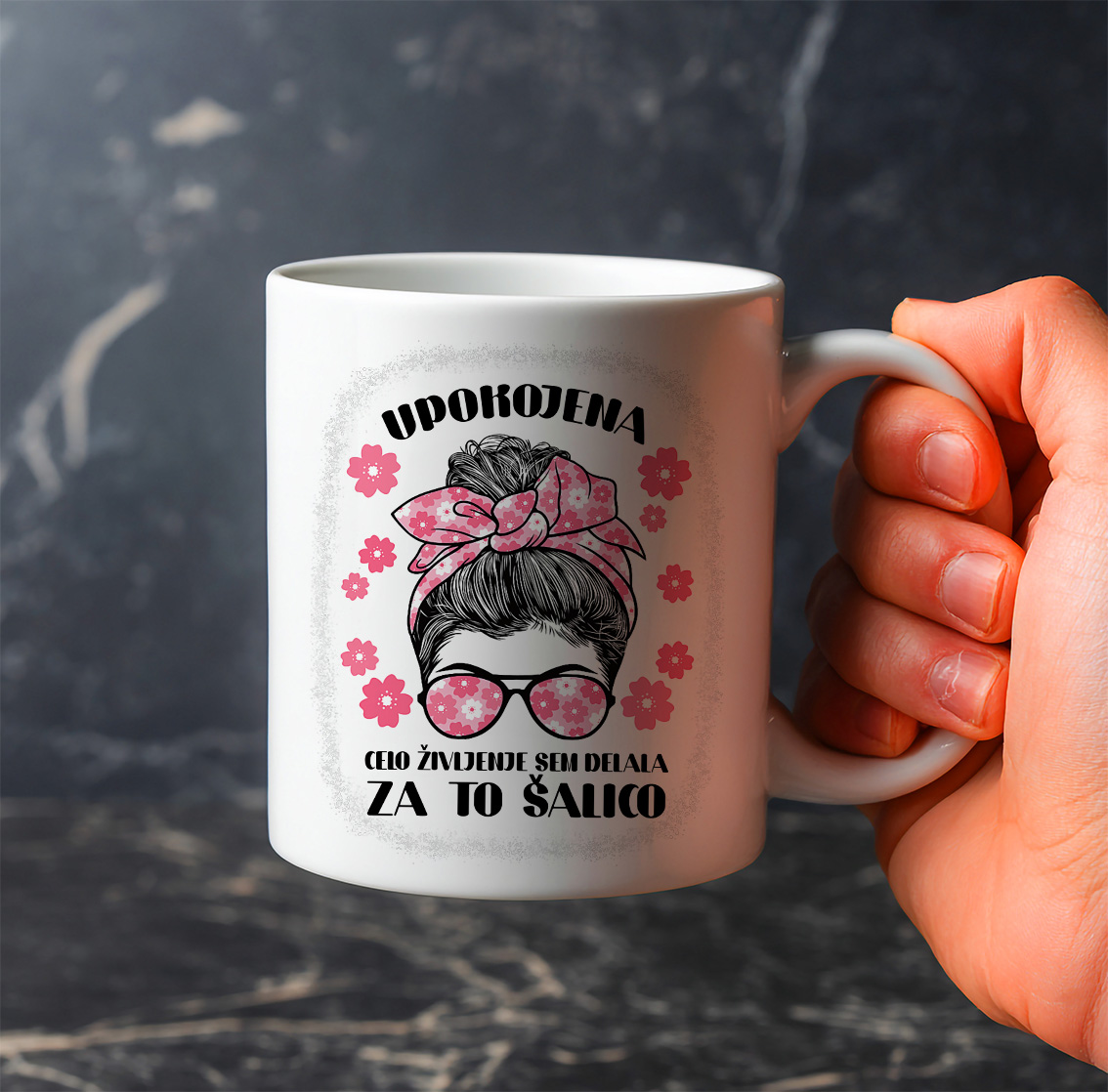 Zakaj izbrati to šalico? Ker je vsakodnevni opomnik na nagrado po letih dela. Popolno darilo za upokojenko – rožice dodajo nežnost, napis pa nasmeh ob vsakem srkanju.